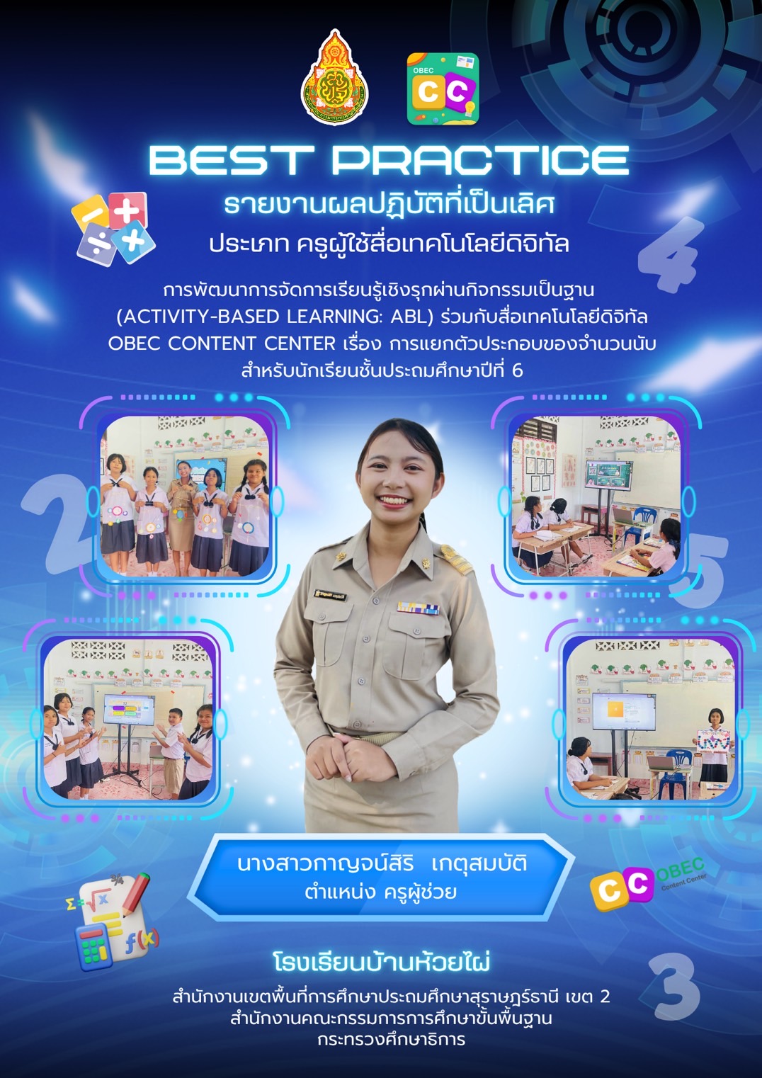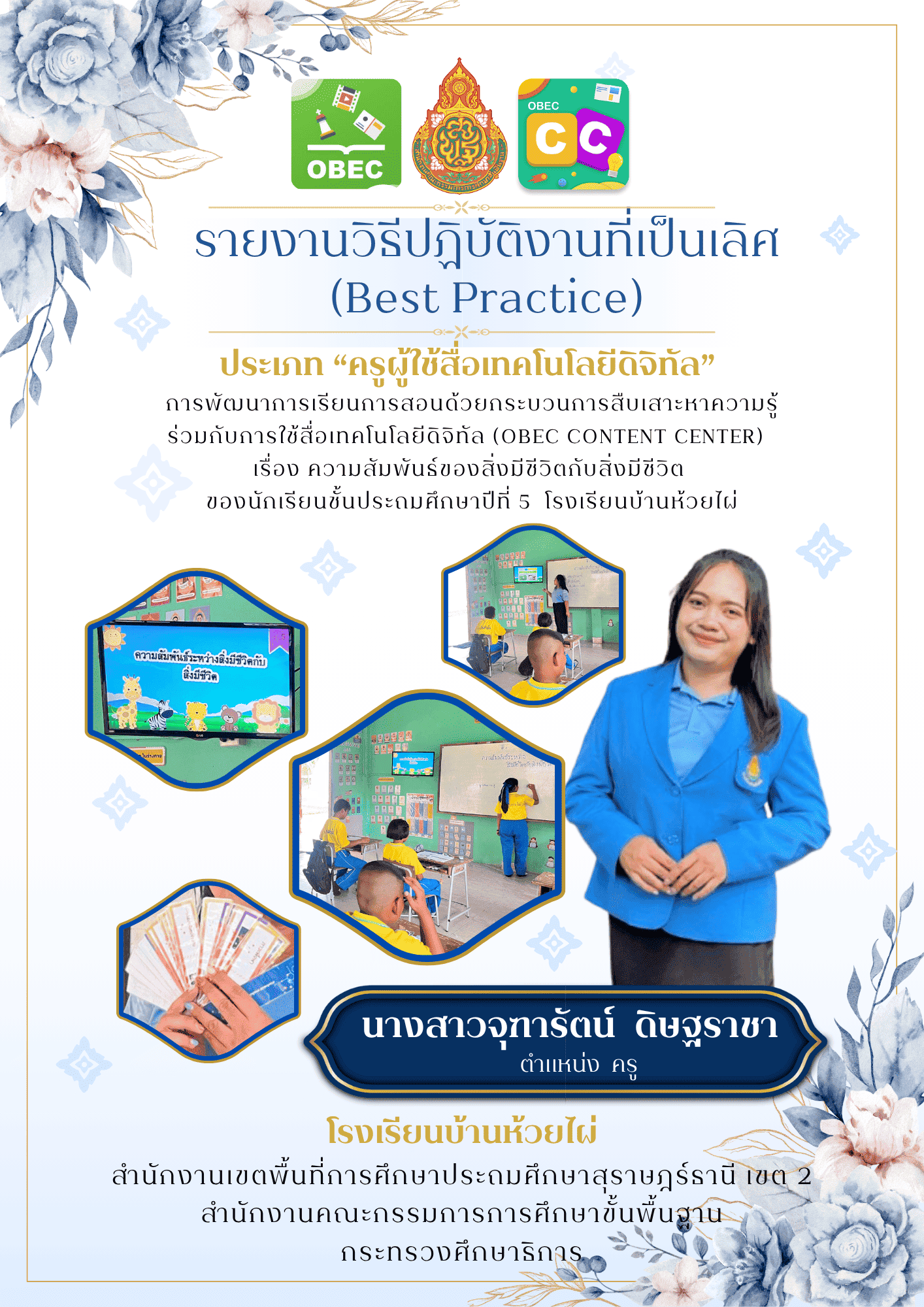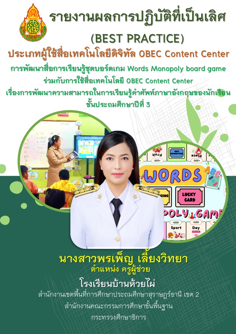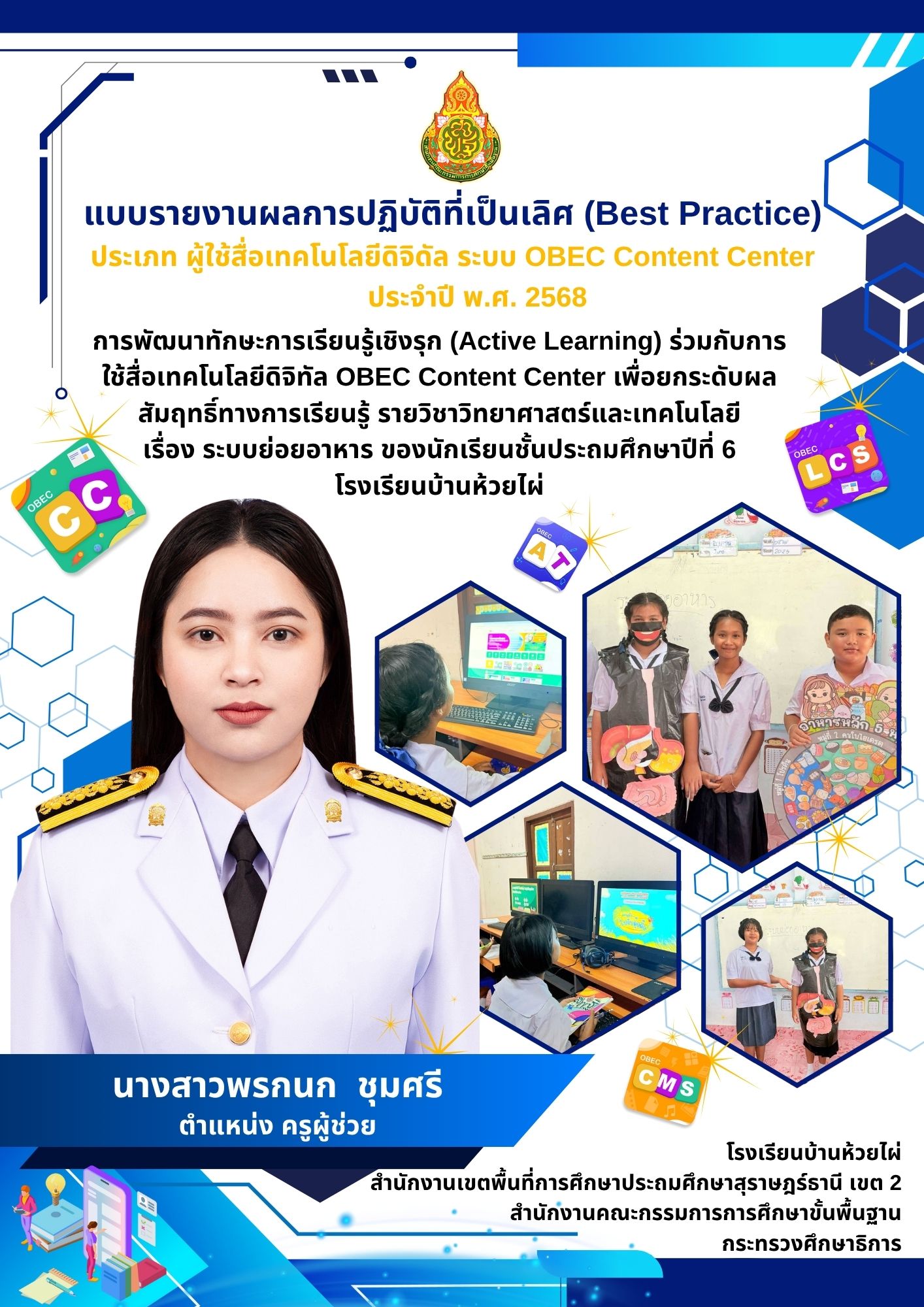 การพัฒนาทักษะการเรียนรู้เชิงรุก (Active Learning) ร่วมกับการใช้สื่อเทคโนโลยีดิจิทัล OBEC Content Center เพื่อยกระดับผลสัมฤทธิ์ทางการเรียนรู้ รายวิชาวิทยาศาสตร์และเทคโนโลยี เรื่อง ระบบย่อยอาหาร |